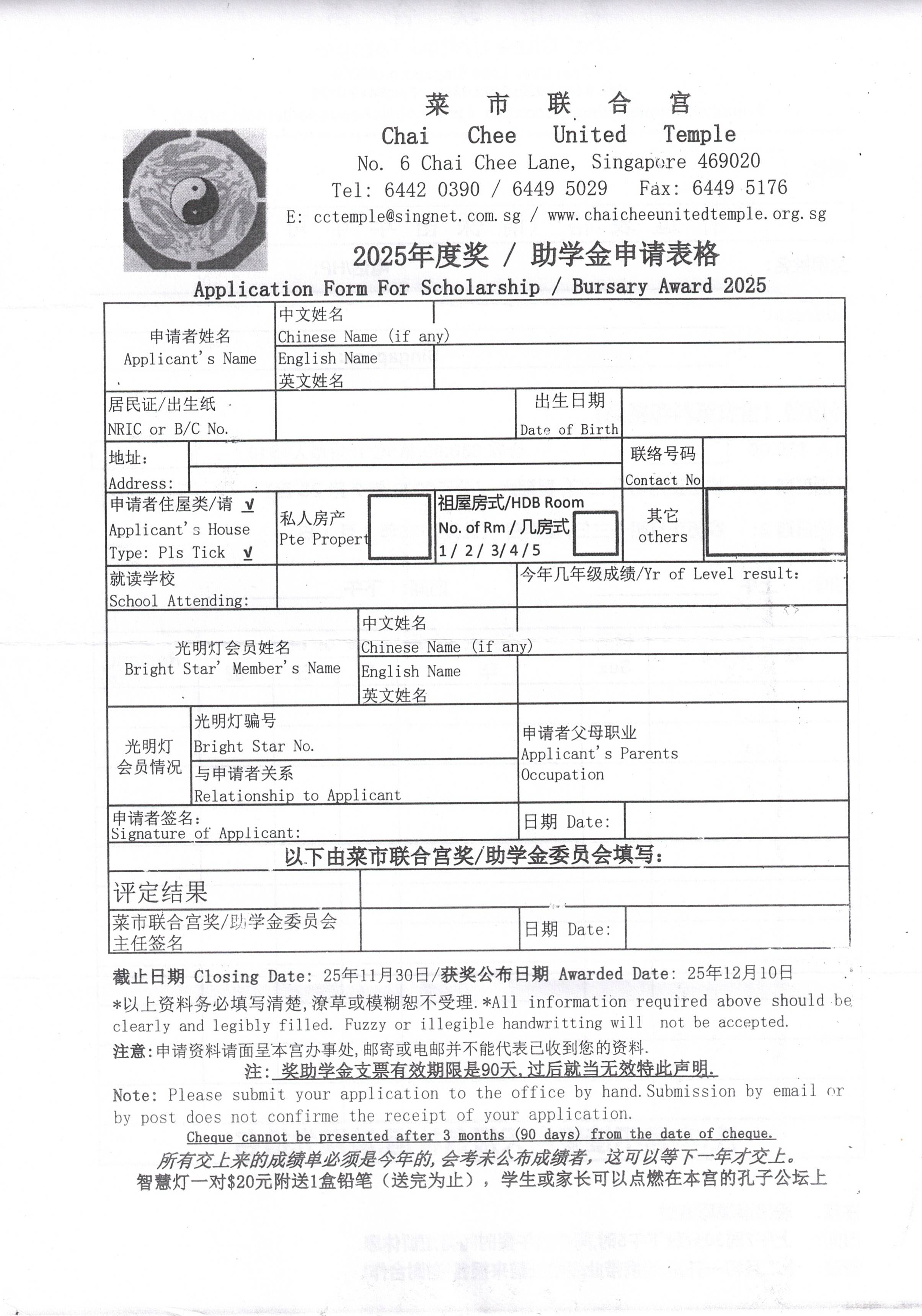 2025 Scholarship form。2026年补运表格。2026年一整年庆典节目活动表